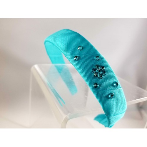 25mm wide. Crystals usually coordinate with the color ribbon but custom