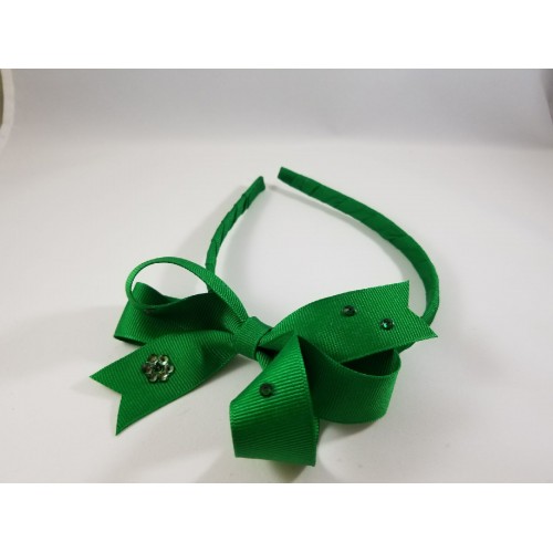 7/8" grosgrain ribbon and is 5" across. The bow is balanced but